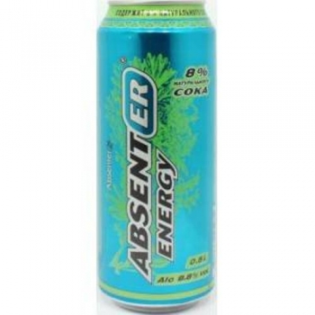 Absenter Energy – алко-энергетический коктейль. Тонизирующий напиток, способный поднять настроение и зарядить дополнительной энергией. Кофеин и таурин, содержащийся в напитке, способствует концентрации сил и внимания. Любая вечеринка с Absenter Energy будет длиться гораздо дольше. Напиток содержит 10% натуральных соков: апельсинового и лимонного, натуральные экстракты гуараны, гренадин. Состав разрабатывался ведущими лабораториями Европы на основе пристрастий и пожеланий самых взыскательных потребителей.